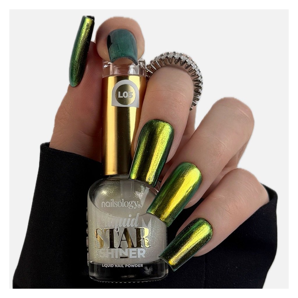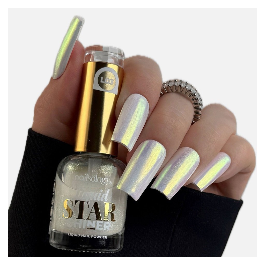 Objavte úplne nový rozmer v zdobení nechtov! Liquid Star Shiner od značky Clavier Nailsology je tekutý prášok, ktorý zmení každú manikúru na umelecké dielo. Vďaka svojej inovatívnej tekutej forme sa jednoducho aplikuje. Stačí pár ťahov a nechty žiaria ako zrkadlo ✨