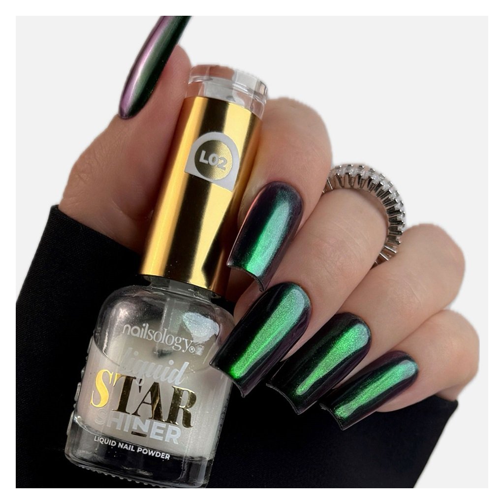 Objavte úplne nový rozmer v zdobení nechtov! Liquid Star Shiner od značky Clavier Nailsology je tekutý prášok, ktorý zmení každú manikúru na umelecké dielo. Vďaka svojej inovatívnej tekutej forme sa jednoducho aplikuje. Stačí pár ťahov a nechty žiaria ako zrkadlo ✨