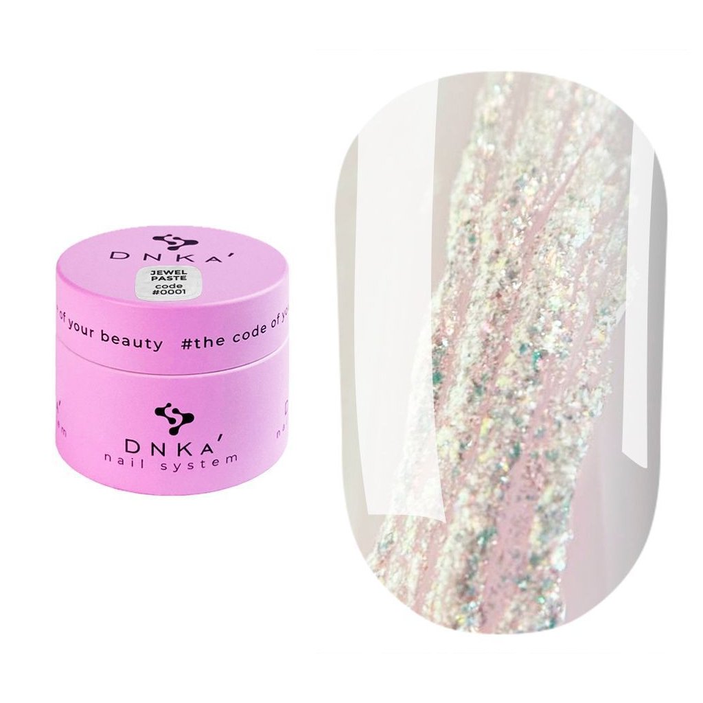 DNKa’ Gel Paste je profesionálna art-pasta s bohatými perleťovými pigmentmi a trblietavými časticami, ktoré vytvárajú úchvatné odlesky. Neobsahuje lepivú vrstvu a nevyžaduje vrchný top coat. Vďaka možnosti miešania odtieňov medzi sebou aj s inými produktami rozširuje kreatívne možnosti a umožňuje dosiahnuť ohromujúce efekty.