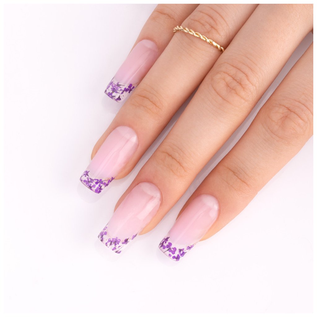 2. Kvety aplikujte do vytvrdeného gélu, gél laku alebo akrygélu, alebo ich primiešajte do stavebného gélu.